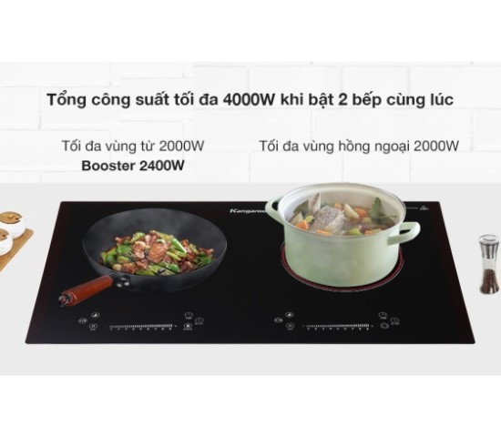 Vùng từ 2000W, đạt 2400W khi sử dụng Booster gia nhiệt nhanh, vùng hồng ngoại 2000W.
