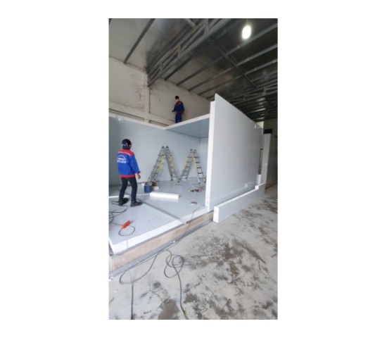 + Tường, trần & 42 kg/m2. Kết nối bằng ngàm âm dương. Hai mặt cách nhiệt bằng tole Corlobond dày 0,6mm. Panel tường được cán sóng 2 mặt để tăng độ cứng và tính thẩm mỹ của công trình¸đáy: Cách nhiệt bằng Panel Polyurethane (PU) dày 125mm, tỷ trọng 40.