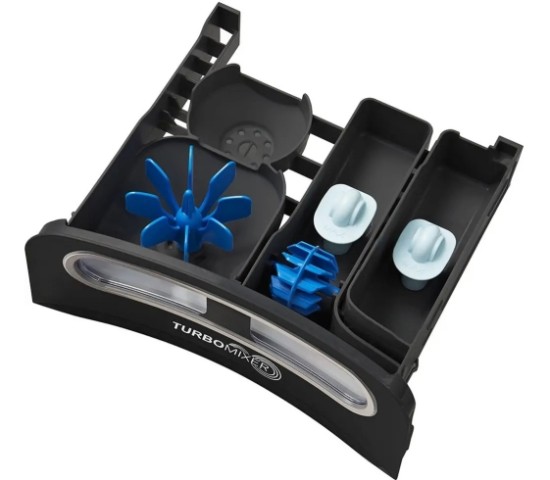 Trong ngăn chứa nước giặt, xả thì chiếc máy giặt này còn được trang bị thêm hộp đánh bột giặt để hòa tan chất giặt tẩy ngay lập tức. Đồng thời cánh quạt dưới mâm giặt quay cùng luồng nước đôi luân chuyển giúp tạo ra bọt mịn đưa chất tẩy thấm sâu vào từng sợi vải để tách và loại bỏ vết bẩn “cứng đầu” dễ dàng.