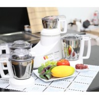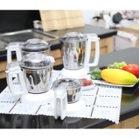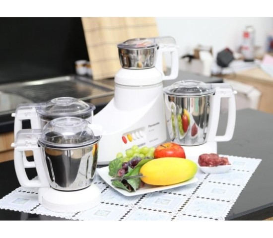 Máy xay sinh tố Panasonic MX-AC400WRA trang bị một cối xay sinh tố bằng nhựa cao cấp chống vỡ, 3 cối xay cỡ lớn, vừa và nhỏ bằng thép không gỉ, sáng bóng, dễ dàng vệ sinh sau khi dùng.