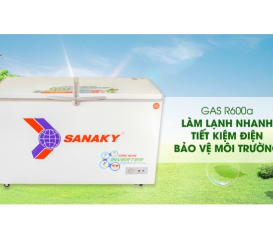 Để người dùng có thể hạn chế được chi phí điện khi sử dụng tủ đông, Sanaky đã sử dụng gas R600a cho chiếc tủ đông của mình. Với loại gas này, tủ không chỉ làm lạnh nhanh, tiết kiệm 40% điện năng mà nó còn vô cùng thân thiện với môi trường sống.