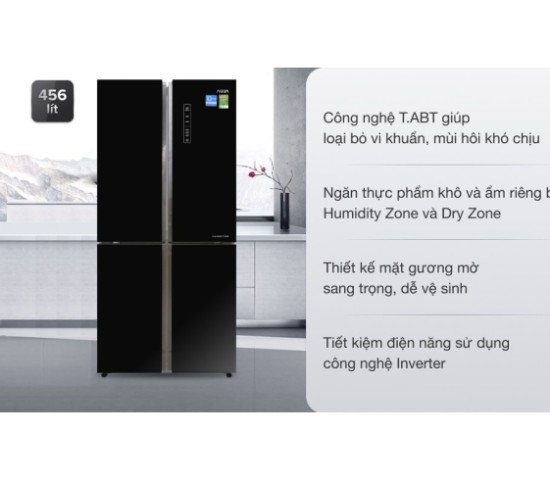 Với thiết kế tủ lạnh kiểu tủ 4 cửa có 1 ngăn lạnh trên, 2 ngăn đông dưới cùng dung tích sử dụng rộng rãi 456 lít phù hợp với gia đình có 4 - 5 thành viên, cho bạn sử dụng thuận tiện, dễ dàng.