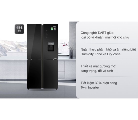 Tủ lạnh Aqua Inverter 456 lít AQR-IGW525EM GB là dạng tủ lớn với thiết kế tủ 4 cửa chất liệu gương mờ cùng với bảng điều khiển, hệ thống lấy nước bên ngoài vô cùng tiện lợi, hiện đại. Đi cùng dung tích 456 lít, chiếc tủ lạnh Aqua này sẽ đáp ứng hoàn hảo cho gia đình có 4 - 5 người.