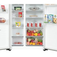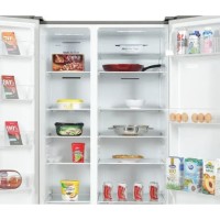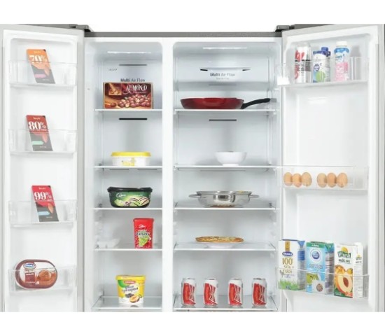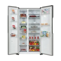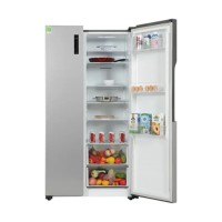 - Dòng tủ lạnh side by side, chất liệu cửa tủ được làm từ thép không gỉ bền chắc với màu bạc tinh tế, hòa hợp với mọi không gian nội thất.