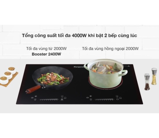 Vùng từ 2000W, đạt 2400W khi sử dụng Booster gia nhiệt nhanh, vùng hồng ngoại 2000W.