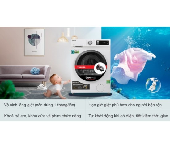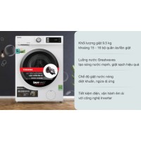 Bên cạnh đó, máy giặt Toshiba Inverter TW-BK105S2V(WS) sở hữu khối lượng giặt đến 9.5 kg, thích hợp cho những hộ gia đình có 5 - 7 người, hoặc ít hơn nhưng lại có nhu cầu làm sạch quần áo nhiều trong mỗi lần giặt.