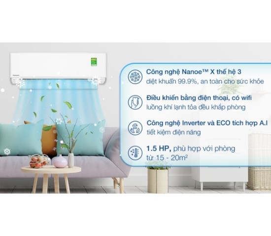 - Chiếc điều hòa Panasonic này được thiết kế với công suất 11900 BTU, phù hợp làm mát cho căn phòng có diện tích từ 15 - 20m².