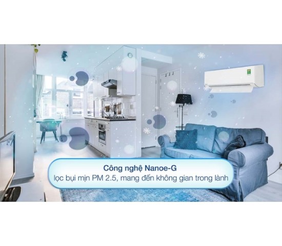 - Công nghệ Nanoe-G lọc bụi mịn PM 2.5: Giải phóng ra các phân tử Nanoe-G với kích thước siêu nhỏ, để loại bỏ các hạt lơ lửng bên trong không khí, gồm cả hạt bụi mịn PM 2.5, mang lại khả năng lọc sạch bụi bẩn đến 99%, nhờ đó giúp bảo vệ sức khỏe hô hấp cho cả gia đình người dùng tốt hơn.