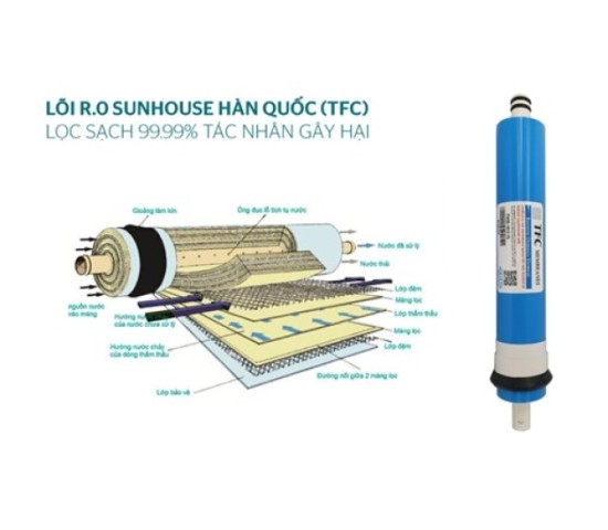 Bộ 3 lõi lọc thô: Loại bỏ các hạt cặn có kích thước > 1micron; hấp thụ 1 phần chất hữu cơ, kim loại nặng, thuốc trừ sâu…; cũng như tăng tuổi thọ cho các lõi kế tiếp, bảo vệ màng R.O.
