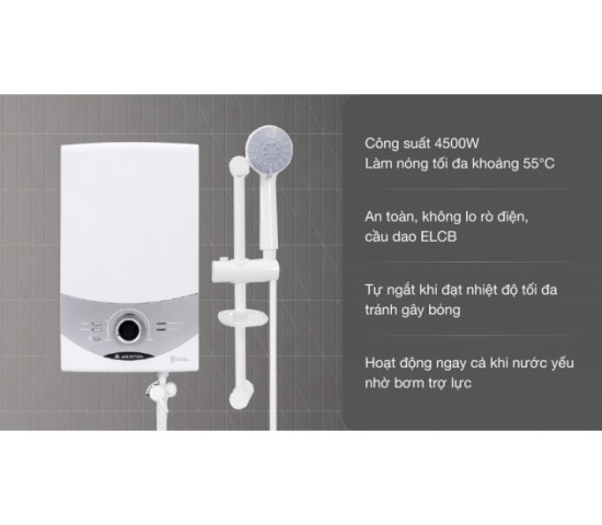 Ariston 4500W Aures SM45PE SBS VN thuộc máy nước nóng trực tiếp nên hầu như sẽ cung cấp ngay lập tức nước nóng cho bạn mà không cần phải chờ đợi quá lâu, giúp bạn thư giãn với dòng nước ấm cùng công suất làm nóng lên đến 4500W, phù hợp cho những khu vực có nhiệt độ ngoài trời từ 20 độ C trở lên như miền Nam.