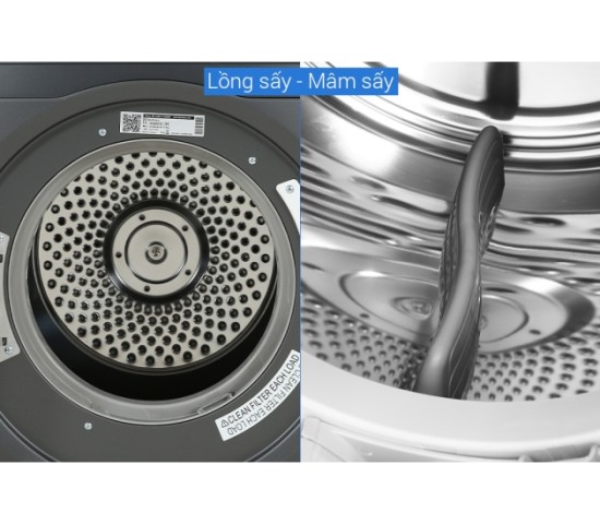- Công nghệ sấy đảo chiều Reverse Tumbling: việc là ủi quần áo trở nên nhanh chóng và dễ dàng hơn nhờ lồng sấy chuyển động và đảo chiều liên tục.