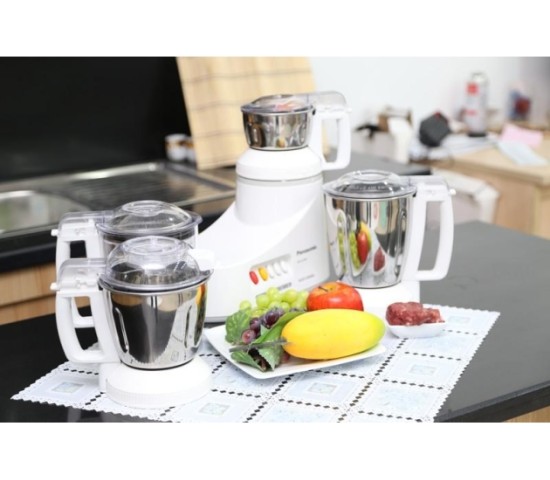 Máy xay sinh tố Panasonic MX-AC400WRA trang bị một cối xay sinh tố bằng nhựa cao cấp chống vỡ, 3 cối xay cỡ lớn, vừa và nhỏ bằng thép không gỉ, sáng bóng, dễ dàng vệ sinh sau khi dùng.
