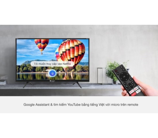 Người dùng có thể dễ dàng điều khiển Google Assistant và tìm kiếm thông tin trên YouTube bằng giọng nói tiếng Việt hỗ trợ 3 miền Bắc - Trung - Nam thông qua remote thông minh, giúp việc sử dụng tivi thêm tiện lợi và linh hoạt.