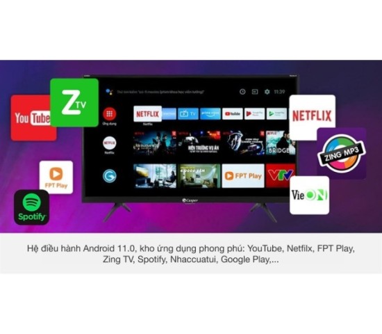 Bên cạnh đó, có kho ứng dụng sẵn có vô cùng phong phú như: YouTube, Google Play, Netflix, Trình duyệt web. Và nhiều ứng dụng khác có thể tải thêm trong kho ứng dụng của tivi như: Clip TV, VTV Go, Galaxy Play, ZingTV, FPT Play,...