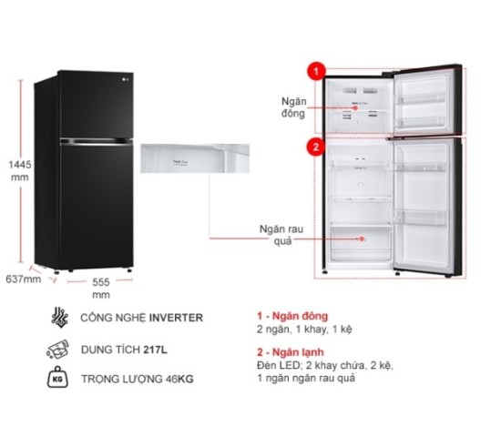 Tủ lạnh LG Inverter 217 lít GV-B212WB